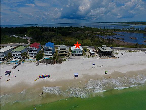 Beautiful Gulf Front home that is turn key fully furnished with an excellent and established rental history. Enjoy breathtaking sunsets year round as well as a bonus bay view that is rarely available anywhere in the world. Since the home is affectionately named "Lime Pie" one can expect good times and fond memories for years to come from this second to none location. The first floor consists of an open floor plan that has granite countertops in the kitchen, stainless steel appliances and ample space to relax or entertain on the spacious decks facing the Gulf as well as the bay. The master bedroom with en suite and gulf view. A 2nd bedroom and bath and laundry closet are also on the 1st floor. 2nd floor consists of 2 bedrooms and a full bath. Parking underneath as well as sitting area and outside shower. Buyer credit-driveway brick pavers.