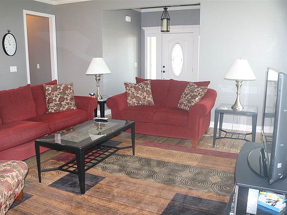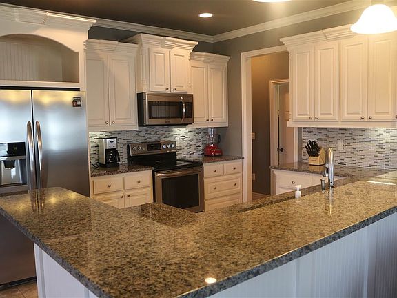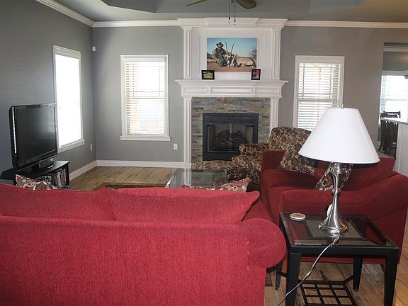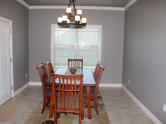This home is immaculate, very modern features, custom blinds, crown molding, beautiful kitchen cabinets with self closures, lighting under cabinets, pantry, Jacuzzi tub, large walk-in shower, lighting on outside exterior, over sized porch perfect for drinking coffee in the mornings, large back covered patio, split bedroom design, dining room, lots of windows-great outdoor lite that filters in, fireplace has decorated tile front with gas logs and very large foyer with huge walk-in closet, move in ready!!