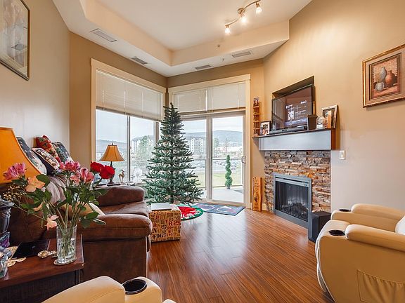 Bright & beautiful 2 bedroom, 2 bathroom, 2 Parking spots, TOP FLOOR unit at The Aria on Two Eagles Golf Course. Featuring gorgeous views of the golf course, mountains & Okanagan lake. Open concept living at its best with spacious kitchen, granite countertops & stainless appliances. The living room has vaulted ceilings, an electric fireplace & sliding balcony doors to the patio. Relax in your master bedroom with a walk-in closet & 5 piece en-suite with separate shower & soaker tub. Enjoy outdoor living on the covered deck while taking in the views of the lake & lush Golf course. 2nd bedroom is perfect for guests/office. This condo is in the heart of West Kelowna, walk to the best restaurants, shopping & recreation. Just a few mins drive to the Okanagan Lake & West Kelowna wine trail. PLUS: 2 Parking spots (1 underground & 1 out front), a storage locker, no age restrictions, pets & rentals allowed. No property transfer tax or speculation tax. Live the Okanagan dream.