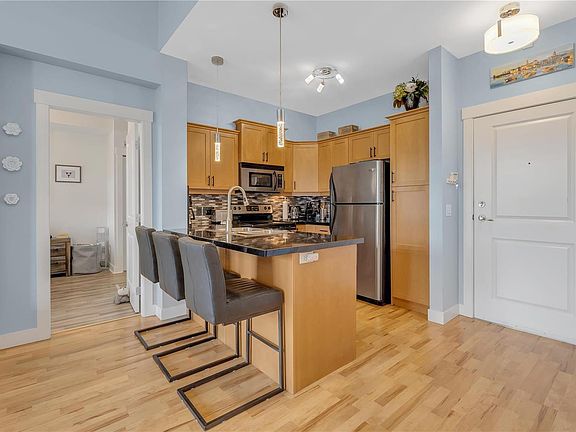Top floor end unit condo at Aria on Two Eagles Golf Course! No spec tax or transfer tax is applicable. Don't let the size fool you... The 11ft ceilings and large windows give this home a bright and airy feel. This condo shows well and is finished in modern tones. The kitchen is well laid out and features granite counters and stainless steel appliances with maple cabinets. The main bedroom has its own ensuite and garden doors to the patio. This building has built-in AC and Heat, so you don't need to worry about unsightly wall units that are nosy and don't work very well. There are 2 underground and secure parking stalls (tandem) and a storage locker. This top floor, end until has 11 ft ceilings, 2 parking stalls and a strata fee of only $300.... PLUS, the lease is prepaid (30k+ value), so you don't have a payment going to the lease. This makes it one of the best buys in Aria today.