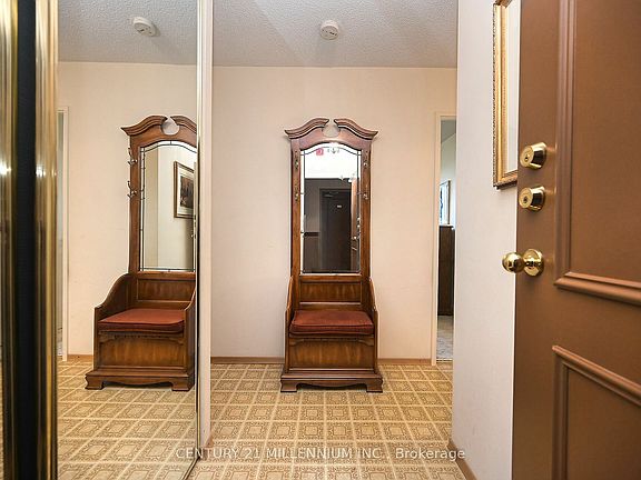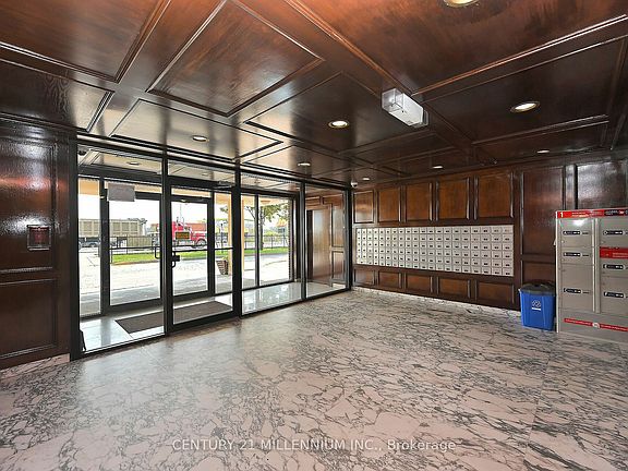 FABULOUS LOCATION! CLOSE TO MALTON GO TRAIN, BUSES & HWY 427. NEAR TO WOODBINE MALL AND WOODBINE ENTERTAINMENT CENTRE. NEUTRAL DECOR THROUGHOUT. RENOVATED KITCHEN. CUPBOARDS IN ENSUITE LAUNDRY. LAMINATE FLOOR IN PRIMARY BEDROOM AND BROADLOOM IN L/R, D/R, AND DEN. LARGE FOYER WITH MIRRORED DOUBLE CLOSET, PRIMARY BEDROOM ALSO HAS MIRRORED DOUBLE CLOSET. 44 FT PRIVATE BALCONY WHICH HAS RECENTLY BEEN RENOVATED WITH GLASS PANELLING RAILINGS. PLEASE NOTE THAT THE LOW CONDO FEES ARE ALL INCLUSIVE.
