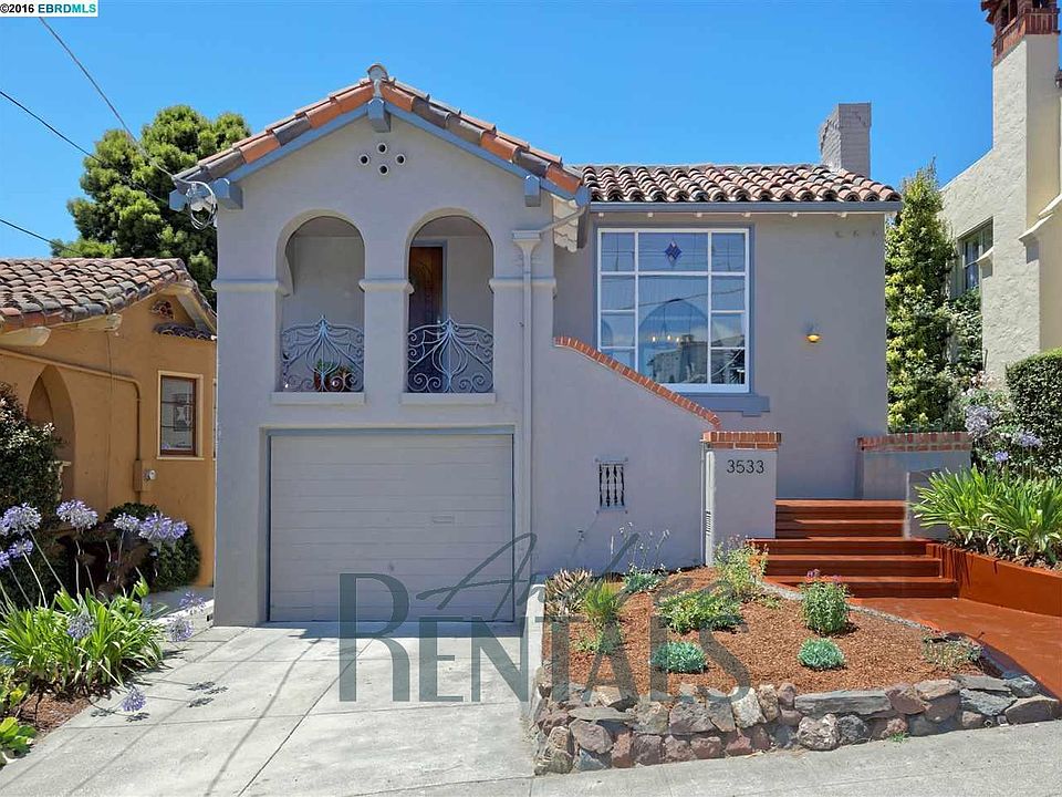 :: Given the current state of our county and world, AndreaRentals will offer virtual tours of empty properties by request. We are happy to chat by phone and answer questions, collect and approve applications and hold them as pending, and anything else we can do to keep things moving via technology. Our goal is to do right by our clients and by the public at large. Stay safe out there. :: _________________________________ Sunny, updated 2BD/1BA in Glenview neighborhood of Oakland has modern updates, vintage details, and hardwood floors throughout. This sweet front porch with ornate railings might make you feel like you're in a villa in Spain, but don't be fooled! This gem is tucked into the desirable Glenview neighborhood of Oakland with its nationally recognized Glenview Elementary School. Through the entry with hall closet, the living room has a large front window with stained-glass details, lovely natural light, and a decorative fireplace. A large arch connects the living room to the formal dining room with windows shaded by greenery. The dining room shares an open floorplan with the updated kitchen. The modern aesthetic of this kitchen includes sleek white quartz countertops, stainless steel refrigerator and dishwasher, gas range, and stylish industrial shelving. The peninsula counter between the dining room and kitchen is the perfect place to pull up a couple of bar stools and enjoy a glass of wine or a casual meal with friends and family. On the other side of the kitchen, the sunny kitchen nook has more shelving and extra cabinet space. From a small landing off the kitchen, the two bedrooms are spacious and sunny with ample closet space and windows overlooking the backyard. The full bath has a standing shower as well as a deep-soaking tub. Stairs down from this small landing lead to the outdoor access and an extra downstairs room where the washer and dryer are located. This large room is ideal for a home gym, office, playroom, or storage space. From here, the sunny backyard is great for some patio furniture or for the kids to run around and play! Conveniently located with nearby grocery shopping at Farmer Joe's, Safeway, and Trader Joe's. Great school district! Glenview Elementary is one of the top elementary schools in the Bay Area. Attached one-car garage for parking or storage, plus one driveway parking spot. One small dog considered. No cats. Available May 1st, 2020 Showing by appointment only - take a Virtual Tour Now! Please email to take a look, and tell me a little about yourself! Servane Valentin BRE: #01999256 415-678-6781 AndreaRentals A Rental Concierge for Bay Area Owners and Rentals www.andrearentals.com Tenants pay for PGE, Water, Internet included home Security Alarm, garbage