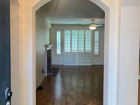 Located in Village One, this home features an open concept floor plan. With 3, possibly 4 bedrooms, tile and Laminate flooring, and plantation shutters throughout. Garage has an additional storage or workspace area. Backyard features a built-in pool with water feature, great for entertaining! Also, a storage shed for all your needs!