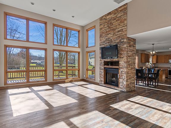 With soaring ceilings and a wall of windows welcoming you home, this stunning lake house offers plenty of room for everyone. With a double sided gas fireplace, a front porch & large back deck, primary bedroom on the main level & a 3 car attached garage, this is one you have to see in person. Boasting extra storage in a hidden attic, this secret space has endless opportunities! Your 4th Bonus Bedroom is a sprawling space over your attached garage and each bedroom is large enough to accommodate your largest king sized bed. With 2 lots in the exclusive lake community, Painted Hills, enjoy your lake access, private clubhouse with a restaurant & bar, swimming pool, pickleball, park, private beach, volleyball, dog park and so much more! With Cedar Creek, Indiana's only winery, distillery & brewery in one location right across the field, you can enjoy their outdoor summer concerts from the comfort of your own home. This 4 Bedroom dream home offers something for everyone! With the Basketball Goal out front and the firepit in the backyard, the memories you will make here will last your family a lifetime! Located 30 minutes from Bloomington, Downtown Indianapolis & the Airport, Painted Hills is exactly what you've been waiting for.