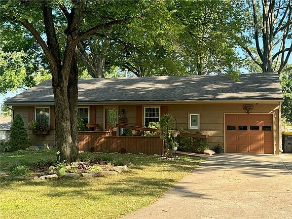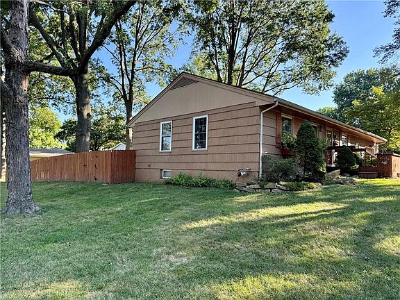 Welcome home to this beautiful true ranch, completely updated and loved by the second owners for nearly 25 years! Highly desired Sherwood Estates subdivision. Brand new Elementary school nearby. Pristine and Immaculate Corner lot with fenced backyard, lighted back deck and patio areas to enjoy the shade trees with NO overhead power lines.  There is a warm and inviting feel with the open concept kitchen, dining, family room area. Beautiful custom maple cabinets that go to the ceiling with matching Island for additional storage. Main Level laundry room with lots of work space and additional storage, and is a functional mud room entering from the backyard! 3 bedroom/4th in basement 3 full bathrooms! New Replacement thermal windows, 6 panel doors, Crown moulding, keyless entry on exterior doors, 200 amp electric service and a 30 amp RV hookup. New sear lines and water public utilities. The basement rec room has hosted countless Cheifs watch parties, lots of room with a built in wet bar.  Enjoy your oasis in the huge suite as the 4th non-conforming in the basement with massive walk-in closet and 3rd full bathroom. Main level Primary bedroom has a full bathroom as well. The Garage is the ultimate storage solution for any house with overhead storage tread plated walls and cabinets galore!  Features a one car garage but two lane paved parking. This house has so many updates they can't all be listed. Home Warranty provided!
