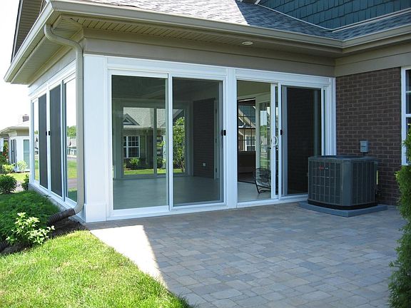 Hampton model with upgraded flooring, kitchen cabinetry and millwork. Master bath features large roll-in shower. Enclosed heated and cooled patio with side paver patio....