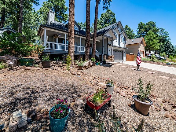 This beautiful University Highlands home is mountain living at it's finest. Situated among the tall pines in one of Flagstaff's most desirable neighborhoods this home is a true treat. A well manicured front yard climbs up to an expansive craftsman style front porch. Inside, you are welcomed to an expansive living room with vaulted ceilings and a cozy wood burning fireplace. The updated kitchen features granite counter tops, stainless steel appliances and ample cabinet space. A lower level bedroom and bath creates the perfect private guest space while the upstairs gives plenty of room for the family with two large guest bedrooms and a private master suite with soaking tub, oversized shower and private deck overlooking the yard. The outdoor space truly seals the deal. Soak in the hot tub