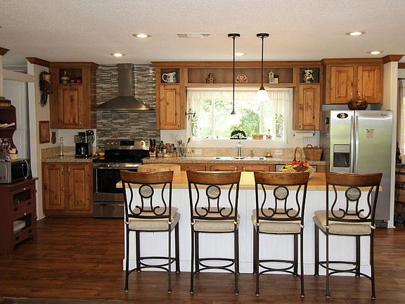 Stunning home, open concept, cabinets, vinyl plank flooring, exposed beams, recessed and pendant lights, everything has been upgraded! SS appliances, custom 8' butcher block island. Spacious living room with fireplace, over-sized master bedroom, bath-tile walk in shower, step out of the french doors onto a back deck overlooking gorgeous gardens and landscaping. Greenhouse, Perimeter fencing. Remote control gate at entrance, Underground power, 3 mi to Blue springs, 4-6 mi to boat ramp on the Withlacoochee River. Furniture negotiable. Some items included!