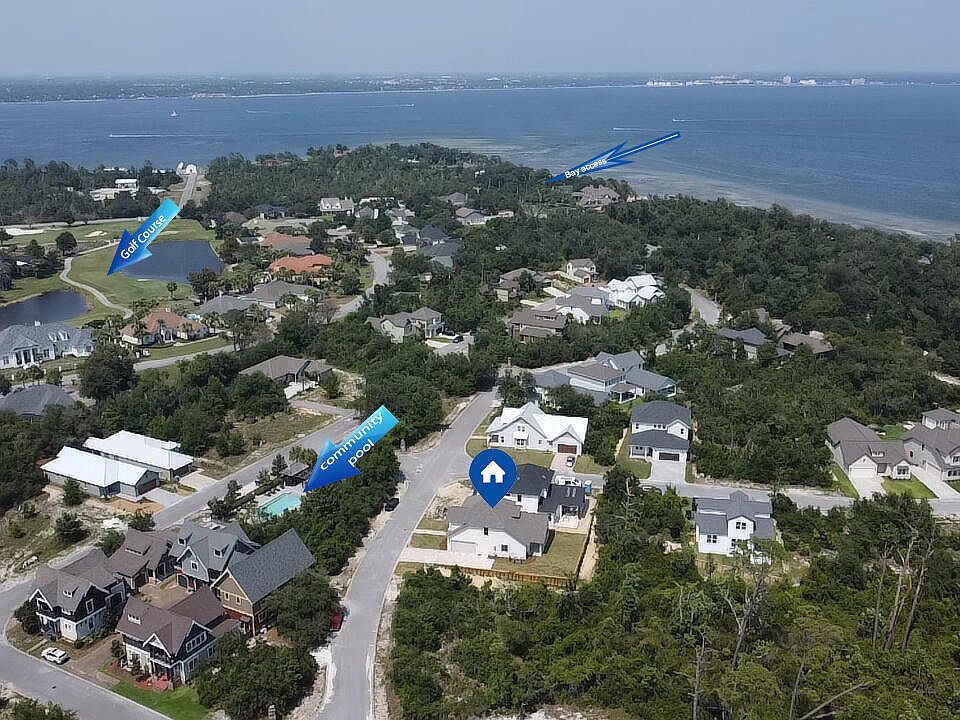 Located directly across the street from the community pool, this home offers convenient access to leisure activities. This home is just a 1/4 mile from the nearest public Bay Beach access and backs up to the Nicklaus Golf Course, providing ample opportunities for outdoor recreation. The community is a short drive from the nearest marina and waterfront restaurants, making it an ideal location for those who enjoy coastal living.