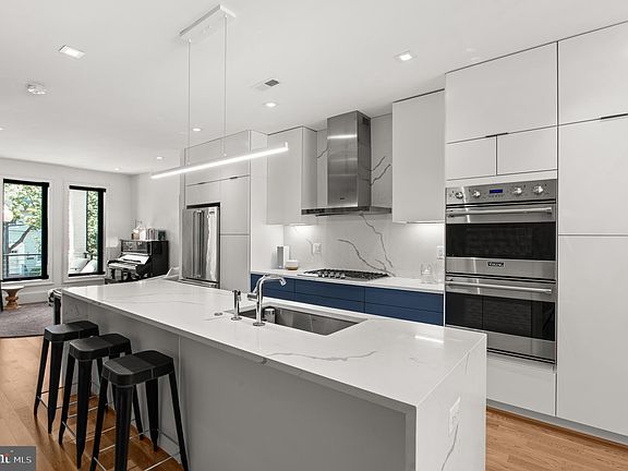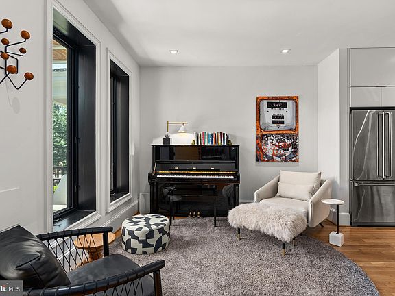 Broker OPEN TUESDAY 12-2 and CLIENTS are WELCOME. Welcome to this exciting contemporary masterpiece offering four light filled levels artfully designed for todays living and just three years young! Captivating in its top of the line finishes and custom windows, with hardwood floors throughout. The main level welcomes you with an inviting front porch opening into the high ceiling living room, designer gourmet kitchen with island, dining area and warm welcoming family room -- all of which overlook a beautiful and deep entertaining deck with lush green landscaping and a private two car parking pad. Custom glass bannisters escort you up to the second level which provides two bedrooms each with ensuite bath plus a bonus sliding glass entryway into the centrally located office/exercise room. The owners suite encompasses the entire top story of the home. An elegant owners bath with tub and glass shower opens to a private rooftop deck allowing for a peaceful retreat perfect for a reading nook. Custom closets galore along with a small balcony off the owners spacious bedroom allow for views over the entire lush green landscaping and lower level deck. The daylight lower level of the home lives like its own guest suite with full bedroom and bath, an additional office or storage room, a complete second kitchen with ample living/family room plus front and back doors to the exterior outdoor living spaces. A two car parking pad completes this rare offering in sought after Burleith. Two blocks to Wisconsin Avenue, and just five blocks to Georgetown University and Hospital. This special offering is a contemporary lovers dream home. A total of 4 bedrooms, 2 offices/dens, 4.5 baths and just over 3,000 square feet with fabulous outdoor entertaining spaces and private 2 car parking. TESLA ELECTRIC VEHICLE CHARGING STATION conveys!
