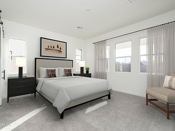 Experience contemporary design in a versatile living space with this move-in ready home. This corner home site with no direct back neighbors has outstanding mountain views. The open-concept kitchen provides connectivity to the main living area with prime access to the outdoor patio. The expansive flex room is conveniently placed off the foyer, providing plenty of space for entertaining. The home is complete with designer curated finishes that will hit all the boxes. This home is a must see.