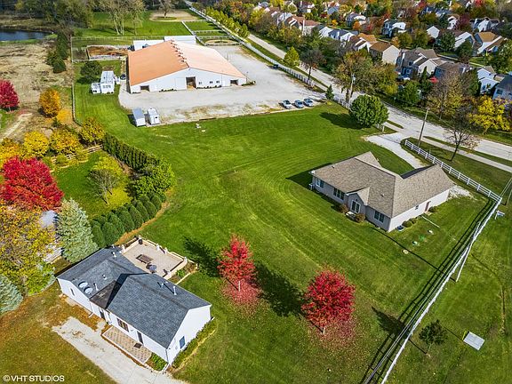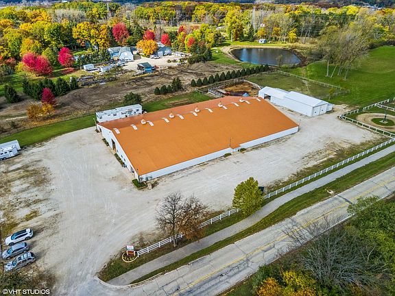 *** CLICK ON VIRTUAL TOUR FOR AN AERIAL VIDEO *** Eppers Stable for Sale for the First Time along with a nicely updated 1,342 SF Ranch with 2 Bedrooms, 2 Full Bathrooms, HARDWOOD and Tile Floors and a lovely paver brick patio with a Wood Fire Brick Oven. Kitchen remodeled 2006 & bathroom updated in 2021 & New Siding Installed. If HORSES are your passion, this beautiful nearly 8 Acre turn-key training and boarding equestrian facility which is strategically located in unincorporated Lake County halfway between Chicago and Milwaukee is your dream come true. The 132'x 200' Morton Building was built in 1973 and had a $204K renovation in March 2009 consisting of a new roof, trusses and exterior siding. The 58 - 10' X 10' heated stalls should rent for $650 - $850 per month and have automatic waterers and individual lighting. This well lit and well ventilated 72' X 200' Indoor Arena has doors to the adjacent concrete aisles and the outsides and includes 3 portable stalls and a round pen. In addition to the stalls, the heated aisles have access to 5 tackrooms, 2 grooming rooms, 2 wash racks with hot and cold water, Bathroom with ceramic tile floor and a washer and dryer. Stable also has a nicely finished 2 bedroom apartment with full bath, kitchen, living room and office. Additional 2,700 SF storage building contains a 30'x51' concrete floor garage with two drive in doors both 12' wide and 13.5' tall (room for big boats or RV's), tack room, workshop, hay storage and 3 additional tack rooms with separate outside entry. The outside facilities include a Dover 6 horse walker, 4 turnout paddocks, a riding plat and a 10 ton Schuld Bushnell grain bin. Ample parking for trucks, cars and trailers. Sale also includes a 2 Bedroom mobile home for guests or employees. Adjacent 3 Bedroom, 2 Full Bathroom Home with basement built in 2006 available for an addition $400K would make an ideal residence for the owner/operator. Life is too short to live without horses.