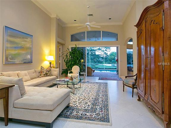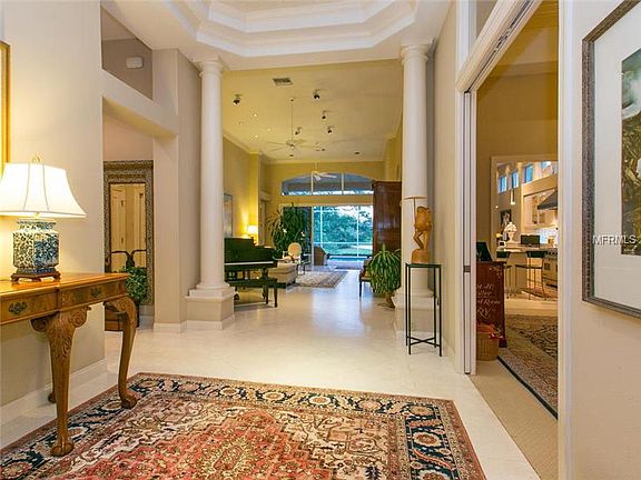 Timeless and elegant are the words that best describe this home. This Queens Harbor home with a modified Ashton floor plan is sure to please. Set on a tranquil lake, the glass etched doors open into an elegant foyer, saturnia marble abounds and soaring 14' ceilings create an atmosphere of light and openness. The chefs kitchen, with 6 burner gas Viking range with grill and double ovens also boasts a stainless steel commercial range hood with stainless steel warming shelves. Granite counters and backsplash of course, sub zero refrigerator and Miele dishwasher and a Viking wine refrigerator make this a sensational place to create any meal. Relax by your private heated pool or hop in your hot tub overlooking the lake or stroll down the street to the large community pool for the your daily laps. Living here, you will enjoy membership in the Bay Isles Beach Club, a private gated beach access with restrooms, parking, grills and gazebos on the beach. 21 clay tennis courts, 45 holes of golf, deep water marina and access to all the resort restaurants and facilities are yours to enjoy with a Longboat Key Club membership (seperate membership involved). Queens Harbor is a maintenance free neighborhood where your lawn care is taken care of through your association fee, a great alternative to condo living to be sure. This home has been meticulously maintained by it's original owner, be sure to put this one on your "must see" list. Owner is a licensed Realtor in state of Florida