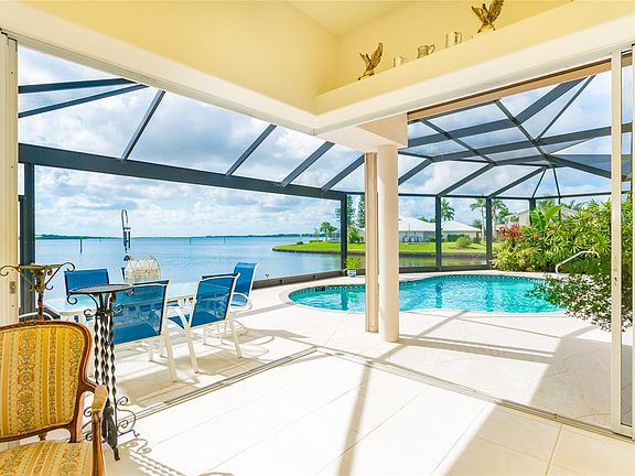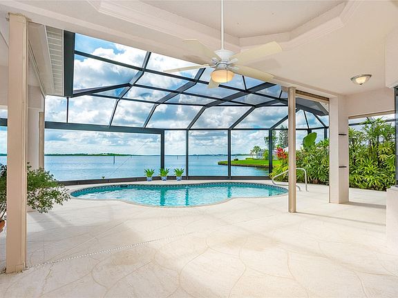 Are you looking for a Tranquil Oasis where you can step out your backdoor and embrace the warmth of the morning sun as the salty breeze tickles your senses? Knock-knock...opportunity is here! Located on a quiet cul-de-sac, this Quality, Custom built Fero home is nestled on the Myakka River providing Sparkling Water Views from almost every room! An expansive lanai brings plenty of room to entertain, take a dip in the heated pool or simply enjoy the beauty of your Waterfront Sanctuary while listening to dolphins splashing in the background. Tall, open corner sliding glass doors off the family room invites the tranquility inside where you will find soaring ceilings with space for everything. The bright and airy kitchen offers 2 dishwashers, tons of storage, breakfast bar and easy to maintain stylish Corian Countertops. Tucked away behind the kitchen is a huge bonus space perfect for a Craft room, Storage, or your own Private Office. The large, poolside master suite offers 10 ft tray ceilings, two walk-in closets, dual sinks, walk-in bathtub, and separate walk-in shower. The split floor plan furnishes the guest bedrooms with their own spectacular water views. The lush, landscaped property is surrounded by over 200 ft of concrete seawall with a 10,000 LB Boat Lift and Dock located in the Fox Waterway on the south end of the property. The large RV Garage has all the hookups (30AMP & DO) and is even air conditioned providing a great space to work. BY WATER, it has Direct Access to Charlotte Harbor (25 minutes) and Boca Grande (45 minutes), home of World Class Fishing and Boating. By land, it is conveniently situated between Englewood and Port Charlotte, with easy access to I-75, Nature Parks, Bike Trails, Golf, Tennis, Playgrounds, 2 Major League Baseball Spring Training Camps and Only a 21-minute drive to the Pristine Gulf Beaches of Manasota Key. It is All about the View! Call today for your private showing!