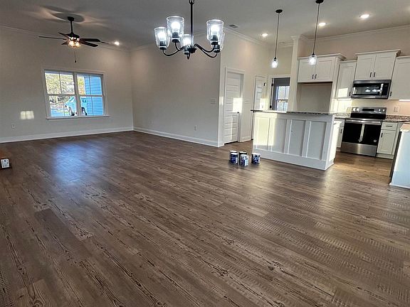 This new construction home features 3 bed and 2 bath with LVP flooring, carpet in bedrooms and granite countertops throughout. The kitchen boasts a lovely, vaulted ceiling, and open concept to the living and dining areas. Stainless steel appliances furnish this beautiful kitchen with soft close cabinets, tile backsplash, kitchen island, and pantry. The master has tray ceilings and separate his and hers closets in the spacious master bathroom. The master bath also features a double vanity, soft close cabinets, and shower. This split-bedroom plan has 2 guest bedrooms with a guest bath offering soft close cabinets, tub/shower combo and linen closet. Outside enjoy your large back porch in this lovely county setting on .58 Acres with NO HOA! Also comes with the craftsman package. Call today and ask how you can make this your future homesite.