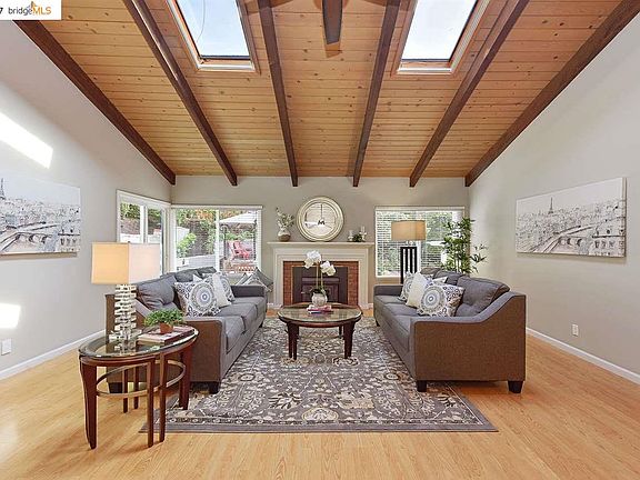 This home has it all! Curb appeal, views, great floorplan and beautiful back yard. This home has been lovingly updated with custom paint and newer kitchen. As you enter the double front doors you are greeted by soaring ceilings with two skylights that flood the huge living room and dining room with light. The freshly updated kitchen has stainless steel appliances, quartz counters and loads of gorgeous cabinets. There are views of the lush green back yard from kitchen and living room as well as family room. The backyard is perfect for entertaining with 2 patios and a large sandbox for the kiddos. The master bath has been updated and has a large shower. Open Sunday, 10/22 from 1-4 pm