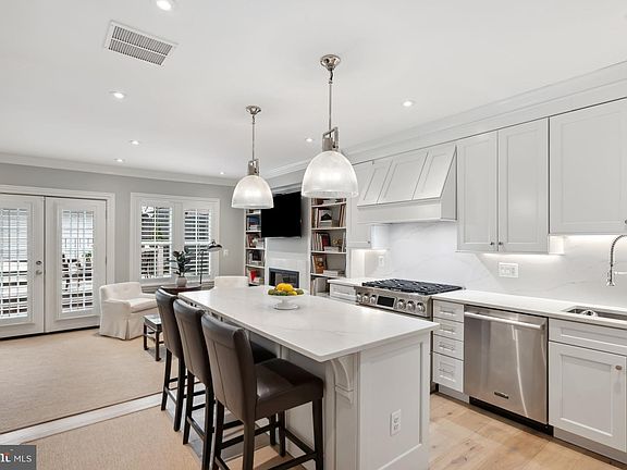 Open House this Sun (3/23) 1-3pm. Completely rebuilt in 2023, this Georgetown-inspired townhome is filled with high-end finishes, a sophisticated design and spacious entertaining areas. Developer Erick Cedron is passionate about quality and fine details. This stunning home features coffered ceilings and paneled walls on the main level, complemented by unique molding and plantation shutters that flow throughout. The expansive living room offers an open-concept layout, seamlessly connecting to the dining room which can easily seat twelve. At the rear of the main level, the high-end kitchen is equipped with Signature Kitchen Suite appliances, a central island, and luxurious quartz countertops. The kitchen also includes a convenient powder room and ample pantry space. Adjacent to the kitchen, a cozy sitting area with an electric fireplace flanked by built-in shelves leads to a elegant stone patio, perfect for outdoor entertaining. Upstairs, the home includes two upper levels with four-bedroom suites, a laundry room with an in-unit LG washer and dryer, and a utility sink. The rear bedroom suites on each upper level open onto small balconies and feature walk-in closets. Both the bathrooms and laundry room are elegantly adorned with unique tilework. The front bedrooms offer generous closet space and large windows that fill the rooms with natural light. The third floor flex room can serve as a gym or office. The lower level features a private guest suite with a flex space and kitchenette, complete with LG appliances, an additional laundry room with a sink, extensive closet space, and a rear bedroom that opens to the back stone patio. Additional highlights include a private two-car parking pad with rolling garage doors, a Honeywell Pro Series alarm system, and adjustable Lutron lighting fixtures throughout. Located in Burleith, this home provides easy access to Georgetown’s vibrant shops and restaurants, MedStar Hospital, Duke Ellington School of the Arts, and Washington International School.