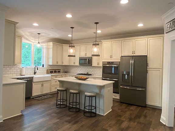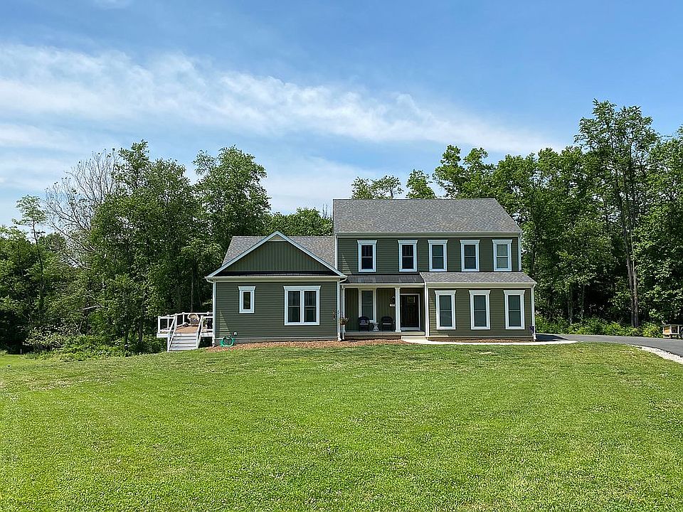 True 6 bedroom craftsman style custom home with stunning rustic and farmhouse design elements throughout and separate in-law quarters! In-law quarters with easily accessible separate entrance, added sound proofing, and wall between was framed so that it could easily have an interior door added if desired; 2 bedrooms; full bath with walk-in shower with built-in seat, custom tile work, double vanity with center tower; kitchen with quartz counters, island, built-in pantry and open to family room ; and a large laundry room that doubles as a craft room.... The main house has 4 bedrooms and 2.5 baths; an open layout with clear site lines from kitchen to family room; a large mud room with transom window; truly a dream kitchen with all the upgrades including quartz counters, farmhouse apron sink, running bond subway tile backsplash, slate finger-proof appliances, and double pendants over large island that make the perfect statement. Large owner's suite with massive walk-in closet. Master ensuite has dual vanities, a walk-in shower with glass doors, custom tile work, and a niche. Additional features include shiplap style doors, a covered front porch with metal roof, high end lighting, quartz/granite/engineered countertops in all baths, 9 ft ceilings, a massive deck off main house and another deck off in-law quarters (both with composite, Azek, and vinyl rails), luxury vinyl floors, gas fireplace with brick surround and a hand hewn beam as a mantle, huge walk-in laundry in main home has wood trim designed to add barn style door, iron scroll spindles on staircase, upgraded carpet padding, gas cooking, and triple zone heating. Huge unfinished basement has walk-out and windows for added natural light and a rough in for bath. Situated on over 2.5+ acres that backs to woods and farmland beyond - property is perfect for four wheeling, evenings by a camp fire, and just a country lover's dream!