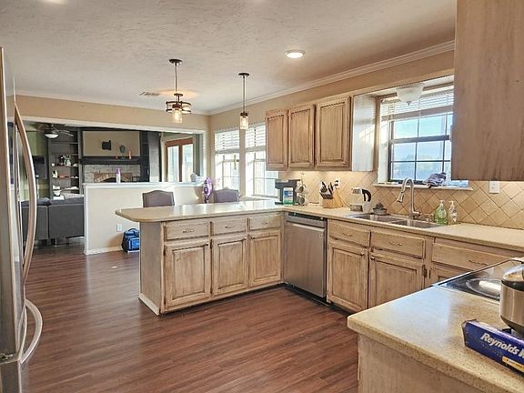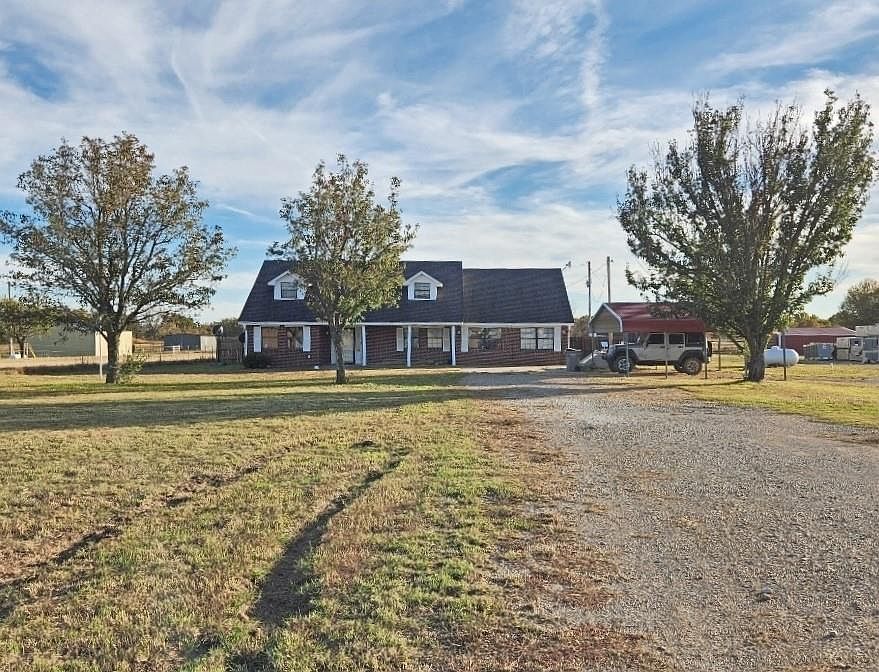 Beautiful 2 story brick home on 10 acres m/l. This home has a great floor plan with numerous options. Downstairs features a beautiful entryway, den, formal living area with fireplace and access to Florida Room and backyard pool area, beautiful remodeled kitchen with up to date colors and fixtures, breakfast area, breakfast bar, tons of cabinets and counter space, formal dining area with additional storage, 1/2 bath for guests, laundry area, Primary bedroom with large closet and another remodeled bathroom directly outside of the Primary bedroom. Upstairs features 3 bedrooms and 1 full bath. 2 of the bedrooms feature a "shared dual" closet & there are dual staircases leading downstairs. Florida room walks out to the lovely backyard space and in ground pool. Property features a storm shelter, workshop, lean 2, aerobic septic system, 12' pond with berm, perfect for target practice. Barbwire fencing and gated entry.