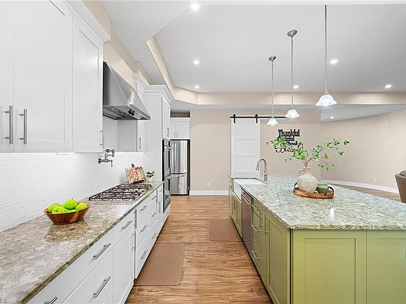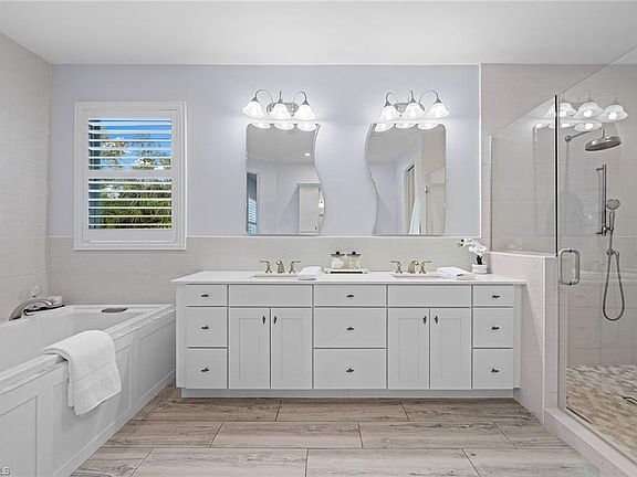 This 4,200-square-foot estate home, completed in 2018, is positioned on 2.73 acres in sought-after Weber Woods. Built with an unwavering focus on structural integrity, featuring poured concrete throughout—including the staircases and walls between both stories—this residence was designed for durability, energy efficiency and refined living. Foam insulation, impact-resistant doors and windows and rooftop solar panels significantly minimize electric costs, only property taxes apply, and a $28 monthly electric bill. A portable whole-house generator ensures uninterrupted power, while an advanced ozone-enhanced water filtration system delivers exceptional water quality. Purposefully designed for grand-scale entertaining, the home seamlessly accommodates gatherings exceeding 100 guests. A 1,900-square-foot lanai offers expansive outdoor living space, and the grounds allow for generous guest parking. The driveway was professionally resealed in April 2025, underscoring the homeowners’ commitment to attentive maintenance. The chef-inspired kitchen showcases custom KitchenAid cabinetry with pullouts, drawers and a pot filler, combining form with functionality. The first-floor bedroom with en suite features a zero-threshold shower for ease and comfort. Everyday conveniences include a second-floor laundry chute and an on-demand hot water system. Additional features include a meticulously installed septic system. Merging architectural precision with eco-forward enhancements, this residence offers an elevated lifestyle in one of Naples’ premier residential communities.