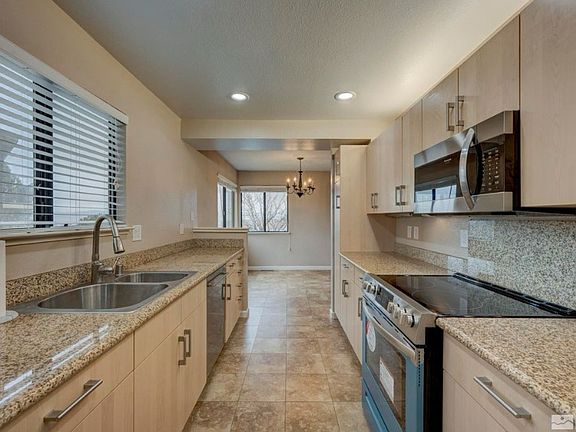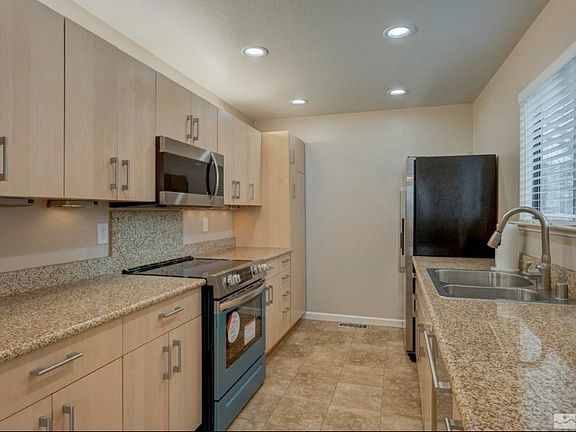 Newly redone, 3-story townhouse near campus. Garage parking, w/d in unit, brand-new kitchen with granite counter-tops, brand-new bathrooms, wood fireplace, an open balcony and two covered sun-rooms with spectacular views of the Washoe valley. Lots of natural light, excellent for plants. The house is currently fully furnished, but can be cleaned out if desired. Landlord covers HOA fees and sewer utility. One year lease moving to month-to-month after the term is complete. No smoking.