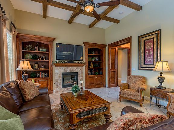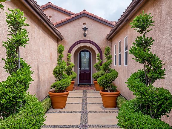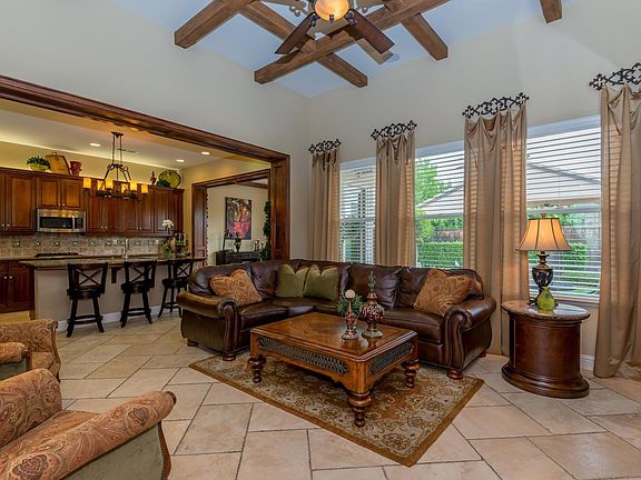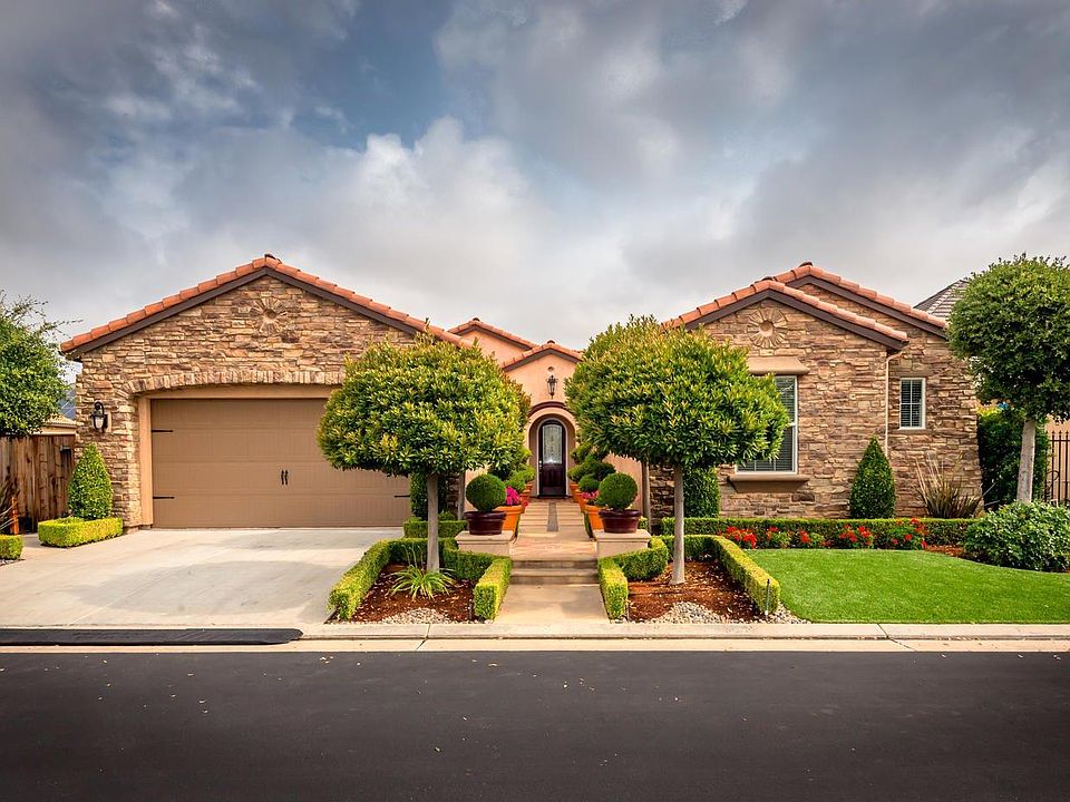 This gorgeous, (former) Barclay Square model home boasts stunning features and upgrades. Top industry designers worked closely with Leo Wilson himself to impress home buyers looking for the finest touches at Harlan Ranch. Inlaid marble mosaic entry, custom finish casing, crown molding and cabinetry. The chefs' kitchen includes the subzero refrigerator, gas cook top, stainless appliances, granite counters and custom tile back-splash. Beamed ceilings adorn the great-room, dining space and owners' suite. The three bathrooms have custom marble and tile work that only artisans create. Entertain in the beautiful backyard with custom built-in BBQ & covered patio. Practice your short game on the putting green, or green thumb it in the raised garden in the spacious side yard. Enjoy the club house, community Jr. Olympic pool, 9 parks, walking trails and paseos. Clovis schools, private community park and gated entry make this home an unbelievable find!