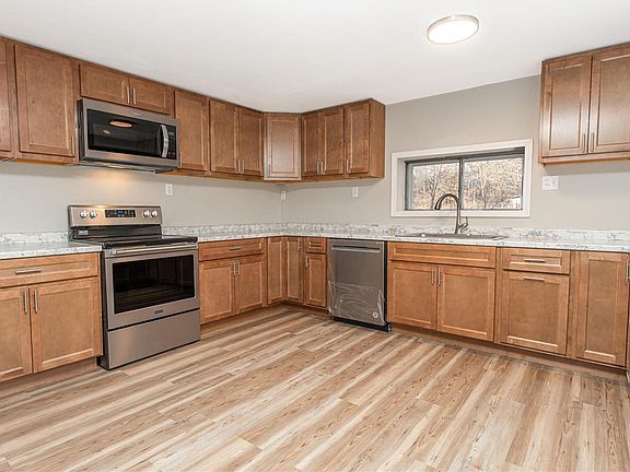 enter from the Garage level you will walk into the beautifully renovated Kitchen with new cabinets, counter tops, sink, faucet, flooring and light fixtures. Big enough to eat in! Plus the seller has installed a new electric range, microwave and dishwasher just for you! There is door leading to the extra large utility room which has had the floor, ceiling and walls painted. The washer and dryer stay but seller has no information on their functionality. There is a nice newly renovated full bathroom with a new vanity, toilet, light fixture and accessories. Upstairs on the Main Level there are 4 bedrooms and another full bathroom. All bedrooms have beautiful new carpet and have been painted plus some new panel doors have been added. The bathroom received a new vanity, toilet, light fixture and accessories. On the outside this home has had the foundation painted, new vinyl siding and gutters and new steps with landing to the access the bedroom/main level directly. Inspection are done!