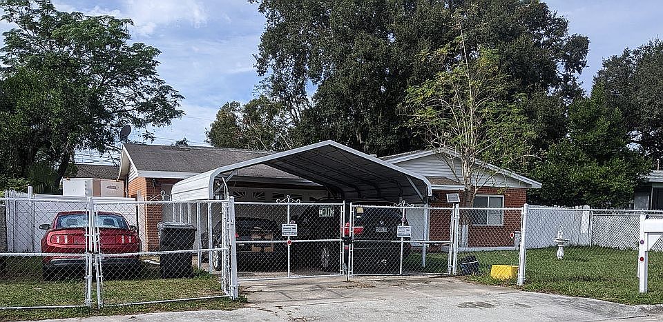 For sale by the owner is this house on a nice neighborhood in Lakeland, Florida. A mile from I-4 and a mile from Kathleen High School and Winston Elementary School. This brick house is built on a roughly .20 of an acre (7700 sq.ft). This house stands out from the neighboring houses by having more than 2000 feet construction, with a more than 2 car integrated to the house garage. Small front yard holds three cars with an added carport (plus of course the two in the garage), nice size back yard all wooden fence on the back, mesh fence on the front to prevent children from wandering, pets or unwanted intruders. This is a 3 bedroom, 1 and a half bathrooms, with an extra family room (man cave that can be easily converted into a room with an office or two rooms more) and a porch that leads to the back yard that was converted into a small gym. All bedrooms have closets, windows, and fans (the master bedroom has the half bathroom). Additionally, two closets for guests, central A/C unit. To avoid mediators, you would be dealing with the owner of the house that will gladly show you the premises upon previous phone appointment. Asking price $265,000.00. Great residential location near Memorial Blvd., 7 minutes from the mall via the highway and or 7 minutes from the main drag Florida Avenue. Sold as is.