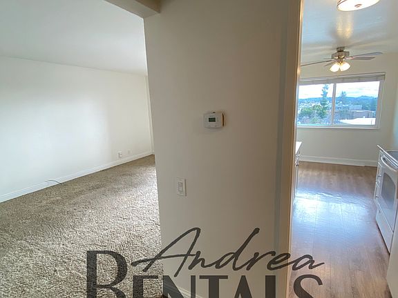 Spacious and super-clean top floor 1 bedroom,1 bathroom apartment with a large, pretty balcony in a retro-cool 50's apartment complex in the Lower Dimond District. The front door opens into a hallway and the kitchen. On the left, an extra-large, bright carpeted living room opens out to a private balcony with large glass doors. There is an alcove kitchen to the right with tons of cabinet and granite counter space, plus space for a breakfast table under the window. The kitchen and living room open into a long hallway to the bathroom and bedroom, plus a huge closet for extra storage. The quiet bedroom is large, with a window that overlooks the Oakland Hills. The bathroom is across the hall from the bedroom, with a shower over a tub. The building is well-maintained and fully secured. 1 gated parking space in the covered and gated area is available for an additional $50 a month. Coin-operated laundry on-site. Elevator in building. Owner pays for water, trash, and sewer. No pets allowed Showing by appointment only Virtual Tour Available Please call or email to take a look, and make sure to tell us something about yourselves! The owner pays for water, trash, and sewer. No pets allowed
