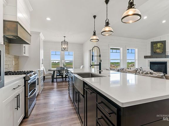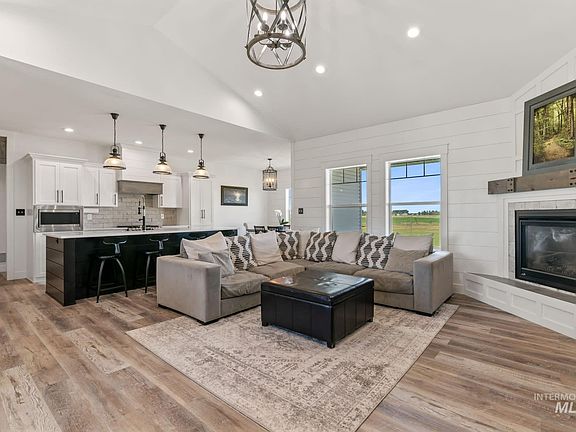 Beautiful 5 bedroom, 3 bath farmhouse style home sitting on a full acre just west of Rigby. Custom cabinets and countertops throughout, as well as high end stainless steel appliances. Fully Finished basement with plenty of storage and a gym! Currently, the home is separated on by one acre lots on each side, and behind the home is all farm land, so it is very private. The yard is huge and has the benefit of an automated sprinkler system that you can control from the garage or your phone! Buyers to verify all information.