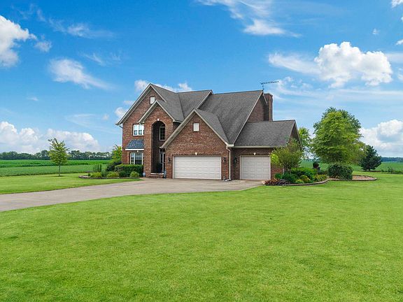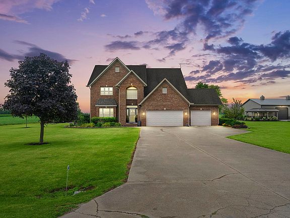 A three-bedroom, 2.5-bath home on 1.81 acres with peaceful farmland surrounding this 2-story brick beauty.A The home features a living room with aA gas fireplace and cathedral ceilings and an adjacent dining room facing the setting sun.A The kitchen is a chef's dream, with granite countertops, a cooktop range, and a separate wall oven.A It's a delight, with plenty of cabinetry for storage and a quaint view of the backyard from the sink.A A dining nook separates the kitchen from the family room, with a 2nd fireplace, built-in bookshelves, and access to the enclosed sunroom.A A large storage closet and A½ bathroom on the main make this an excellent home for entertaining or for a busy household.A Upstairs, you will find two generously sized bedrooms with a shared full bathroom.A The primary bedroom also features an ensuite bathroom with double sinks, a separate tub, and a shower, all with a walk-in closet.A A bonus space is available for a home office, school room, or crafts/hobbies.A The laundry room is upstairs – no more hauling clothes baskets up and down the stairway.A The basement has an oversized family room large enough for living, playing, and entertaining.A The attached storage room is perfect for holiday and seasonal décor.A The outside does NOT disappoint, with a patio and firepit off the enclosed sunroom.A The barn has a 200 amp service with endless possibilities for a workshop, garage, boat storage, and indoor baseball or soccer practice.A This home offers many opportunities and room to truly enjoy your home.