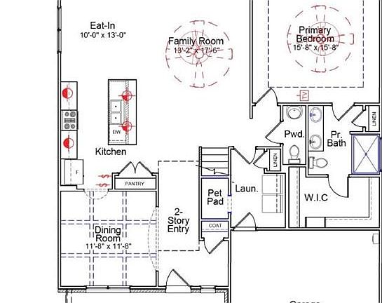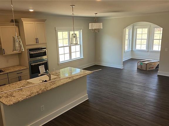 Lot 24 - Nantahala Plan - Spacious 4 bedroom brick and stone home features ML primary, sunroom and 3 bedrooms and loft on UL with buddy bath. LVP floors, pet niche in ML laundry room, coffered and boxed (tray) ceilings, wall oven and microwave combo, gas cooktop with hood vent, pot filler, Quartz tops in kitchen and baths, roll out cabinet tray, wood tread steps and metal spindles, tankless gas water heater, Smart Home Auto Package with 36 mo membership, z-wave thermostat, electronic keypad, video door bell. South facing.
