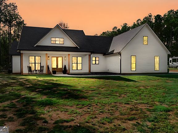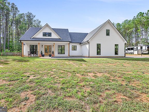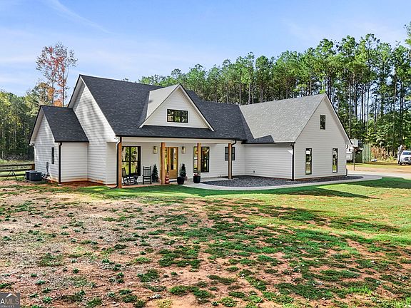 USDA 100% FINANCING ELIGIBLE!! CUSTOM BUILT IN 2022!! BONUS ROOM!! 10+ ACRES!! CHICKENS + BEES INCLUDED!! If you've been waiting for something totally unique, completely private, and FULL of thoughtful, custom touches - WELCOME TO YOUR NEW HOME! Located in the sought-after Lone Oak community of Hogansville, this home was custom-built in 2022 by a professional set designer and every single detail shows it. Sitting on 10 wooded acres, with no HOA and tons of space to live, create, and grow, this home is the definition of intentional design. Step up to the sprawling covered front porch and take in the white oak wood accents on the columns, the clean modern lines, and the black exterior windows (which are oversized and let in a TON of natural light). Upon entering the beautiful wooden double doors, you are welcomed into the living room featuring vaulted ceilings and a Venetian plaster fireplace with a white oak mantle that anchors the living space as if it were a magazine spread. The kitchen? DREAMY!! We're talking quartzite countertops, Cafe appliances, beautiful backsplash, one of a kind venetian plaster vent hood, pull-out trash can, TONS of storage in the island, and all pull-out drawers instead of cabinet doors. Tucked just beyond the kitchen is your secret weapon: a hidden scullery that functions as both a stunning pantry and laundry room, complete with leathered granite counters, wood shelving, a wine fridge, and a nearby workstation designed to keep daily life running smoothly - without sacrificing aesthetics. There's also a gorgeous half bath with granite counters for guests. The primary suite is oversized with vaulted ceilings and provides private access to the back porch. Primary bathroom is complete with two separate vanities with quartz countertops, a gorgeous freestanding tub, a tiled shower, AND TWO separate walk-in closets. Located on the other side of the home, you will find two spacious secondary bedrooms, connected by a Jack + Jill bathroom - each with their own vanities + walk-in closets. Up the wooden staircase? A 434 sqft BONUS ROOM with easy attic access and so many possibilities for versatile use - home office, game room, playroom, home gym, guest space - seriously, you name it. BUT WAIT, THERES MORE: Spray foam insulation, Epoxy floors in the garage AND on the back patio, Upgraded electrical (400 AMP instead of 200!), Custom light fixtures throughout, Sink + workshop/storage space in the garage, 50 AMP power already in place for your RV to hookup to (AND NO HOA TO TELL YOU NO!!!!). Double sliding doors lead you to your XL covered back patio and fenced in backyard. Theres also a yard hydrant!!! Perfect for gardening or taking care of your animals. Speaking of animals - the chickens + bees stay with the property!!! :) Just minutes from Downtown Hogansville, I-85, and an easy drive to Newnan or LaGrange. Homes like this don't come around often and once you see it, you'll know exactly why. Schedule your showing today & LETS GET YOU HOME!
