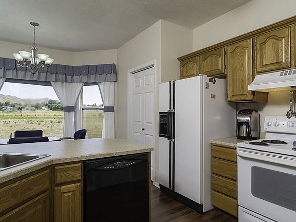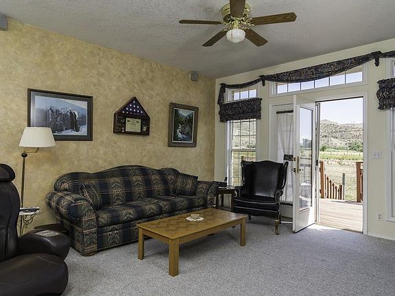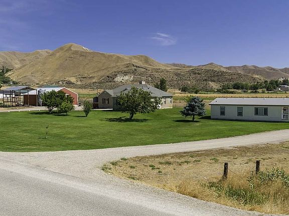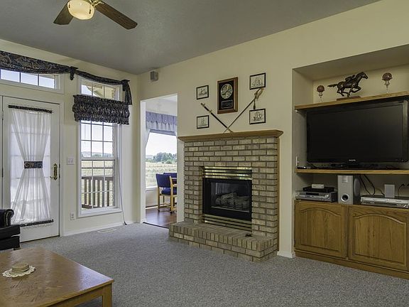 TWO HOMES.Beautiful 8.78 irrigated equine acreage property, Custom brick home & additional 1196 sq.ft. manufactured home on foundation rents for $700 per month. Spectacular Views! 48'x36' barn, 7 stalls, 4 outdoor runs & tack room. Covered hay storage 30'x18' & 3 sided carport 20'x21'. This home has 1812 sq.ft. on the main level, with a full unfinished basement with framed walls and plumbed for bath. Fully fenced, irrigated w/gated pipe. Large master suite w/2 walk in closets, sep. jetted tub & shower