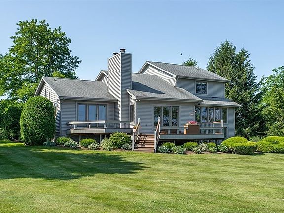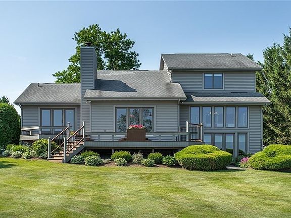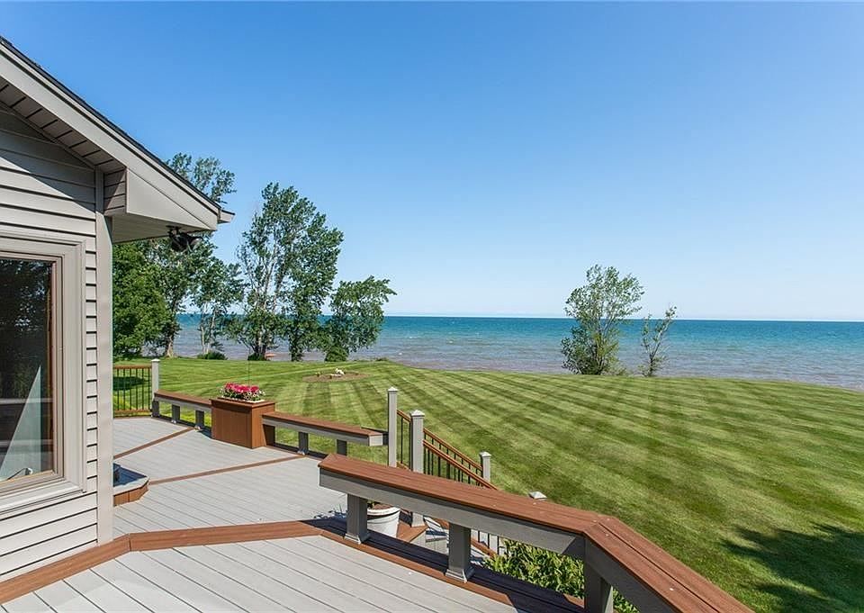 *****OPEN HOUSE THIS SUNDAY 6/28 FROM 1-3PM!!!!*** WATERFRONT PARADISE ! SOARING CEILINGS & WIDE Open rooms Take advantage of the wonderful views of LAKE ONTARIO ! Over 3 ACRES of prime level WATERFRONT ! Balcony with glass railings overlook the 2 STORY GREAT RM w/ floor to ceiling FP & full wall of LAKESIDE Windows! Patio doors leads to the 2 Tier TREX Deck ! NEW CHERRY KITCHEN w/ QUARTZ counters, island bfast bar & Pantry! HUGE Waterside DINING ROOM w/ magnificent Lake Views! FL RM w/vaulted ceilings! 1ST FLR MASTER w/Cathedrals, Fireplace & French doors leading to the WATERSIDE DECK! MSTR Bath w/Glass enclosed shower & Huge Cherry Vanity! LG Office/BDRM w/ unbelievable vistas of LAKE ! 1st Flr Laundry! FULL WALKOUT fin. BSMT w/wall windows overlooking the WATER! 2 car garage w/workshop area!
