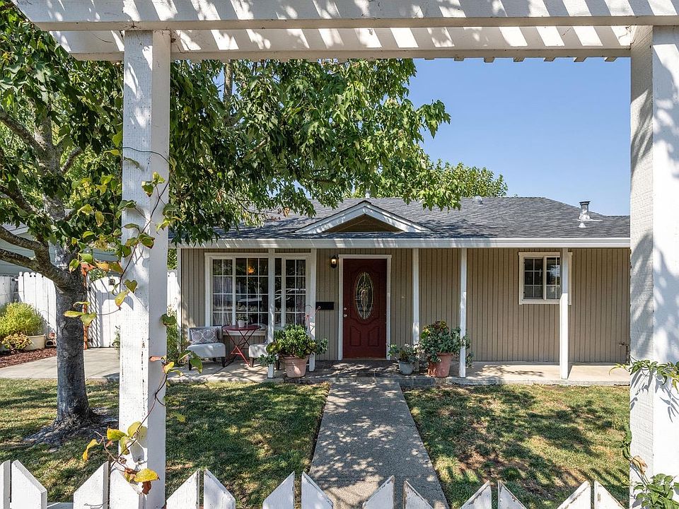 Nestled in Montgomery Village, behind a white picket fence, this single-level, three-bedroom, one and a half bath home has an open floor plan perfect for entertaining. Recent updates feature laminate wood flooring in the bedrooms, and a completely remodeled full bathroom with tile imported from Italy. Other updates include granite countertops, and stainless steel appliances. Ready for relaxation, the gazebo area is equipped with a 220v outlet, perfect for a hot tub. Enjoy a mature plum tree, fig tree, grapevines, and cactus fruit. Gardening enthusiasts will appreciate the several established planter boxes. Just moments away from Whole Foods, Annadel State Park, and Spring Lake.
