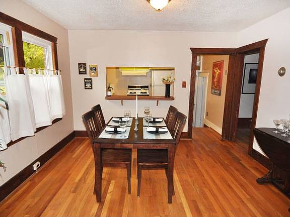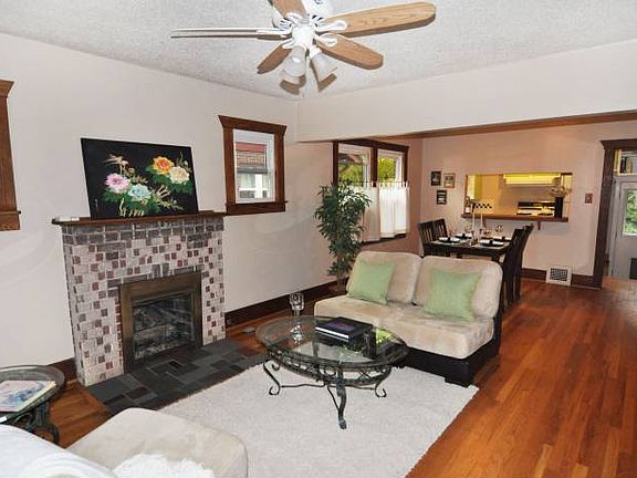 Located in the heart of the Highlands, this home provides an easy walk to the square w/ multiple restaurants & shops! Living room w/fireplace leads into the dining area & kitchen all w/hardwood flooring. Master bedroom includes a Jack and Jill bathroom connected to secondary bedroom/office. Basement is half finished with large bedroom non conforming, large storage and rough-in plumbing. Features all new roof, double hung vinyl windows, concrete sidewalk, hot water heater & detached garage!