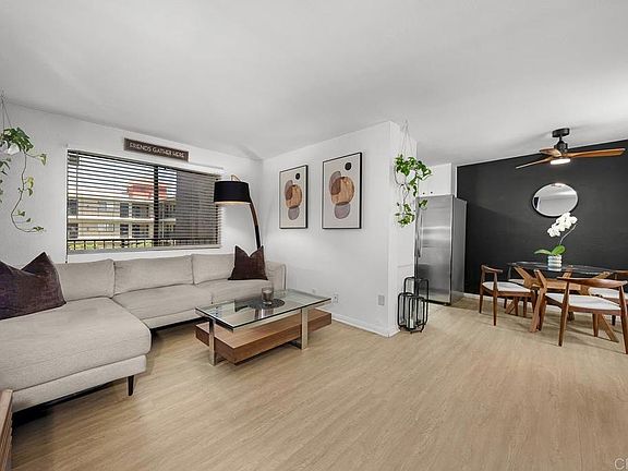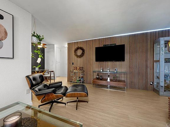 Welcome to your ideal lifestyle in the heart of Normal Heights! This stunning 1-bedroom, 1-bathroom condo offers luxury and elegance at every turn, spanning a roomy 608 sqft. Step into the spacious living room featuring a Luxury Walnut Acoustic Slat Wood Panel Accent wall with LED accent adjustable lighting, setting the mood for cozy nights in front of the new 55in LED 4K UHD Smart Fire TV (conveyable with the property). Featuring new custom interior paint and accent walls, the open layout flows seamlessly with neutral colored vinyl laminate wood flooring throughout. The dining area features a new walnut blade ceiling fan and is the perfect space for entertaining. Windows were recently updated with new faux wood interior blinds and we can not forget the new Craftsman style front door with zinc and clear glass accent design with upgraded door knob handle set. The kitchen is a chef's delight, recently updated with new glass subway tile backsplash, under cabinet sensory accent lighting with rechargeable USB charge ports, and top-of-the-line LG Stainless Steel appliances, including a stove with Airfryer Oven and mounted microwave. Refurbished cabinets with soft closing hinges add a touch of sophistication. In the bathroom, you'll find a new walnut vanity with marble inlay sink and LED accent lighting fixture, along with ample cabinet storage space in the bathroom and hallway. The bedroom is a spacious retreat, featuring custom 5-lite black wood frame white back painted glass panel interior sliding closet doors and custom closet wardrobe interiors for optimal organization. Nestled in the quiet back of the complex, away from the main entrance, this condo offers peace and tranquility. Enjoy easy access to amenities including gated entry and parking, elevator access, and assigned parking. Located just a block from Adams Ave, you'll love the walkability to eateries, nightlife, and all that San Diego has to offer. With easy access to downtown, the beach, and major freeways, this is urban living at its finest. Don't miss this meticulously updated gem.