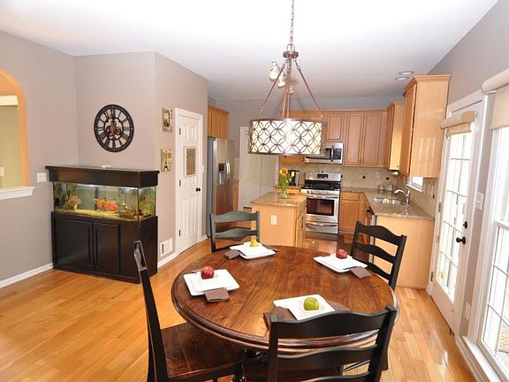 Welcome to this immaculate home! Walk into an inviting 2 story foyer with hardwoods on main level. Newer roof, carriage style garage doors,updated kitchen with island,stainless appliances,granite counters, opens to 2 story great room with fireplace and built in shelving. Your entertaining continues to a deck overlooking wooded backyard. Upstairs includes hardwoods in hallway, master suite with trey ceiling and large bath. 3 more secondary bedrooms with new carpet upstairs. Finished terrace level with rec room, ample storage space and room for entertaining.Many upgrades.