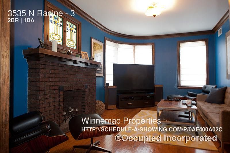 $2000/mo. Available October 1st No security deposit $300 move-in fee per person paid at lease signing Pets ok, limit 2. No agressive breeds. $250 pet fee per pet. One outdoor parking spot available for $150/mo. Just listed for an October 1 move-in. Centrally located, top floor Lakeview 2 bedroom, 1 bath apartment with office in an over-sized three unit walk up. Short walk to either the Addison Red Line El or the Southport Brown Line El. Large living room with decorative fireplace, separate dining room with built-in hutch. Large eat-in kitchen with dishwasher. Separate office. Good sized bedrooms. Both fit queen/king beds. Large closets and extra storage. Central heat and A/C. Coin laundry in the basement. Extra storage available in the basement. Shared back yard and patio. Tenants pay their own utilities (electric, gas, cable, internet, phone) Kitchen: 15' x 11' Dining: 18' x 12' Living Room: 14' x 12' Bedroom: 13' x 11' Bedroom: 14' x 10' Office: 9' x 8' Bathroom: 7' x 7' Needed to apply * $65 application fee per person * Completed application * Copy of ID * Two most recent paystubs Brian Hemstock Winnemac Properties 12 month lease. Dogs, cats ok. No aggressive breeds. $250 pet fee per pet due at lease signing (max 2) $65 application fee per person $300 move-in fee per person due at lease signing in lieu of any security deposit Good credit and rental history needed to apply