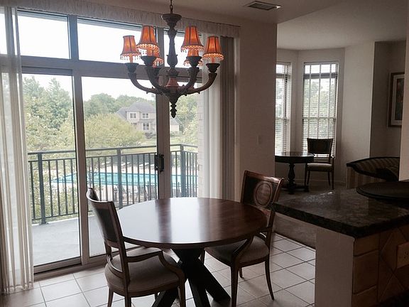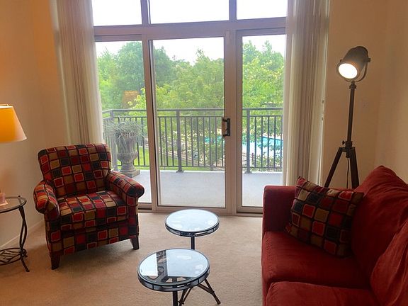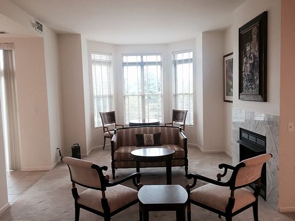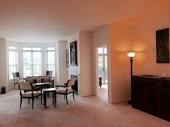 Lovely unit on lower floor for easy access overlooking green area and pool. Enjoy the open floor plan with upgrades throughout including a large master bedroom and bathroom with whirlpool tub, separate shower and two separate vanity/sink areas. Kitchen has granite counter top and good counter space and eating area. Fire place in main room and two balconies for great outdoor space. Second large en-suite bedroom. Den/office or additional sleeping room. Tons of closets and storage and nice laundry room. This building offers outstanding amenities, exercise room, pool and party room. Would prefer to rent this unit furnished. Comes with two parking spaces.