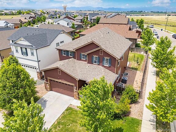 Welcome to this stunning turn-key home in the desirable Sweetgrass neighborhood of Dacono. Situated on a corner lot with a covered front porch, this home features an open-concept layout and stylish farmhouse touches throughout. The main level offers two entry closets, a powder room, a dining area, and a bright living room with a cozy fireplace. The spacious kitchen boasts upgraded cabinets, stainless steel appliances, a large island, gas stovetop, breakfast nook, and an oversized pantry.