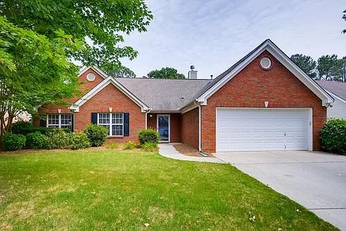 River's End is a special neighborhood of ONLY 32 brick Ranch homes in private, quiet community. 1/4 AC+ lot banded magically by a small lake. EZ one floor living ranch w/ soaring ceilings in Great Room accented by elegant gas fireplace. Master Suite is crowned with vaulted ceiling.Walk-in closet & spa-like bath (soaking tub, double vanity, tile swathed shower) completes Master Retreat.Granite-countered & tile-floored kitchen is flanked with informal breakfast area & formal, enameled-wainscoted, holiday-perfect dining room.Disappearing stairs in EZ access, 2 car garage.
