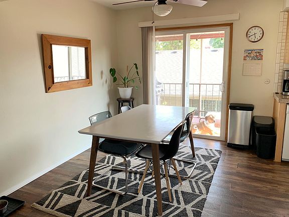 Updated home in a quiet 4 plex. Close to downtown Portland and near bus stops. Optional 3rd bedroom or den in daylight basement Covered balcony off dining room Fenced backyard Washer and Dryer Single garage w/opener Dishwasher, smooth top range, refrigerator, and microwave included Central A/C high efficiency gas furnace Solid flooring throughout except one room Square footage includes approx. 724 sqft of roughly finished open space in daylight basement Owner Pays for water/sewer/trash. Tenant pays for Natural Gas and Electric