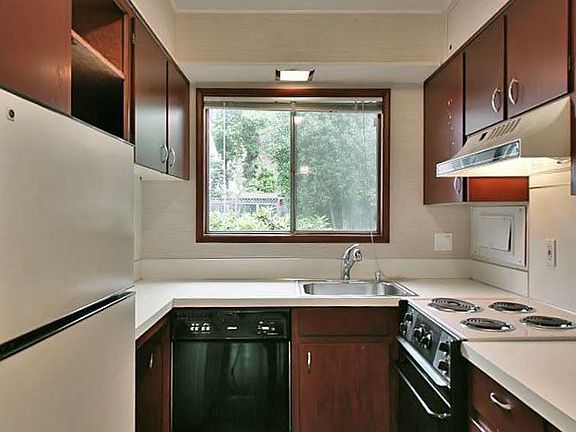 Remodeled from top to bottom! End unit in quiet complex. New Plank Cherry Floors on main level, fresh paint throughout, remodeled kitchen and baths. New carpet upstairs with hardwoods underneath. Private fenced patio. Separate storage, off-street parking, pool. Close-In Location!