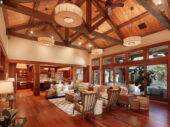 Exquisite builder's home. Rich,elegant interiors make this an extraordinary property. Entertaining inside and outside is easy.The grand great room with concrete cast massive fireplace opens onto an outdoor living area with fireplace,pool and wall of water.Enter the master suite for a spa like experience including a steam shower. Create fabulous meals in the chef's kitchen. Heated garage space for five cars, smart technology throughout.