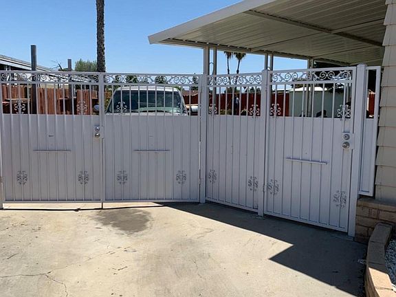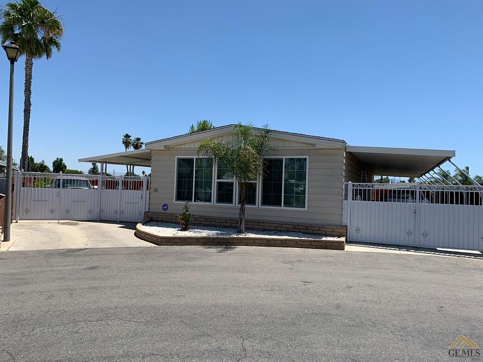 Beautiful Mobile Home located in SW Bakersfield. Great location, close to shopping centers, banks restaurants and convenient stores. This Mobile Home sits on a huge lot, could possibly park up to 3 cars and a small RV. This 3 bedrooms and 1.75 bathroom offers a living space of 1440 sqft. Living room has big windows allowing natural light into the home. Features a spacious master bedroom and bathroom. Nice tile floors throughout most of the home. Kitchen has plenty counter space and breakfast bar area. Unit has big awnings on both sides for extra shade. In the yard there is a nice size shed for storage. Owner has has installed beautiful iron gates on both sides of the home. You must see this property to appreciate all it has to offer. Park includes pool and other amenities. Space Fee is $590.00 per month