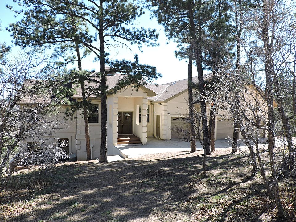 Fully furnished ranch affords real luxury in a tranquil rural setting located just 7 minutes off of I25! Superb construction quality with 8" Steel studs throughout and is complete with gorgeous views from every single room! 3 acres at the end of a cul de sac with picturesque rock formations, native vegetation, and local fauna make hiking, biking and outdoor adventures a breeze. Upscale hickory flooring graces the main level along with vaulted ceilings, a gourmet kitchen with newer stainless steel appliances, granite, refinished 42" maple cabinets, abundant natural light, 5 piece master with walk in closet, 2 large secondary bedrooms that share a remodeled Jack and Jill bath, easy access to the newer two story Trex deck that leads to the lower level trex deck. Several sizable outdoor living spaces provide access to the property and ample entertaining space. This one has an open layout, is furnished, and is ideally located just 40 min to DTC! 10 month lease preferred.