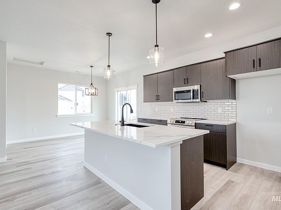 Embrace the comforts of a brand new home in Meridian, Idaho. Welcome to the all new Stratus 1700! The first floor is an entertainer's dream! The open concept living room and kitchen make it easy to host parties while preparing delicious meals. The kitchen comes with stainless steel appliances and stylish solid surface countertops, adding both functionality and aesthetics to the kitchen. The half bathroom is conveniently for guests. Upstairs, the open loft is the perfect spot to catch up on work or enjoy a relaxing movie night. The primary bedroom is a luxurious escape with a spa-like en suite bathroom, perfect for unwinding after a long day. The two secondary rooms are cozy and inviting, with plenty of space to play and dream up adventures. The upstairs laundry room is easily accessed by all bedrooms, meaning fewer trips up and down the stairs. Photos are of the actual home!