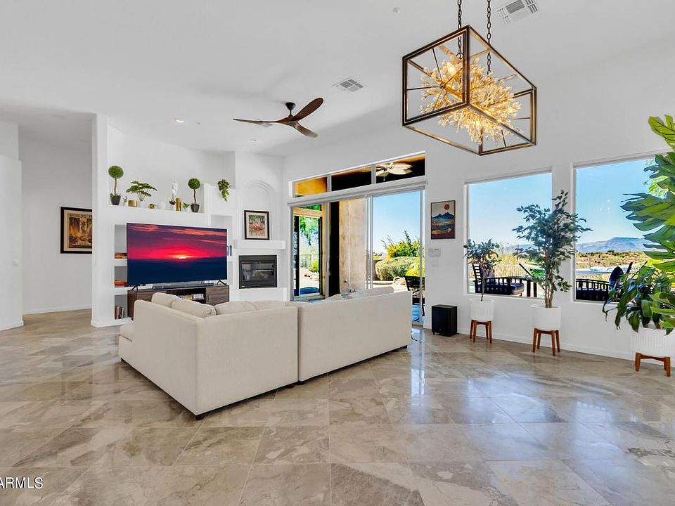 STUNNING Mountain & Desert Views from your Magnificent Resort like Backyard! Available Furnished or Unfurnished! Features a heated swimming pool and spa, 3 car garage, large windows for beautiful views and natural light, Hair and Bone Porcelain tile and Marble Flooring throughout. Brand New Interior Paint; New fixtures in all the rooms. Updated Ceiling fans, light fixtures outside and inside and all new appliances. Brand new washer and dryer conveys. Oversized Cul-de-sac with lots of room, Legend Trail Golf Community, GOLF, Tennis, Pickleball, Socials, Full Fitness Center with Classes & Restaurant. Such serene & natural beauty, you'll never want to leave! $37k of upgrades have been added to the home. North/South Facing. Come tour this beauty before it's gone!